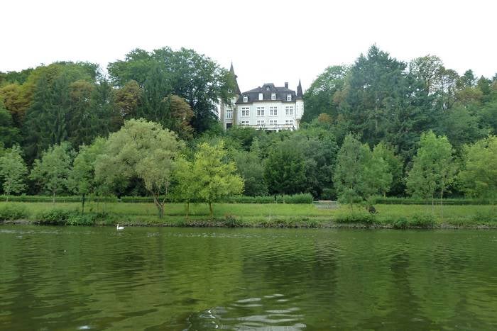 Bij Waulsort zit de sluiswachter te slapen, of beter gezegd, TV te kijken. Wanneer er op de sluis geen enkele beweging waar te nemen is, leg ik de boot maar vast aan het remmingwerk bij de sluis, en ga poolshoogte nemen. Het blijkt dat de sluismeester, boven een filmpje zit te kijken! De dienstbaarheid die je in Nederland vooral in het Noorden tegenkomt is hier ver te zoeken.