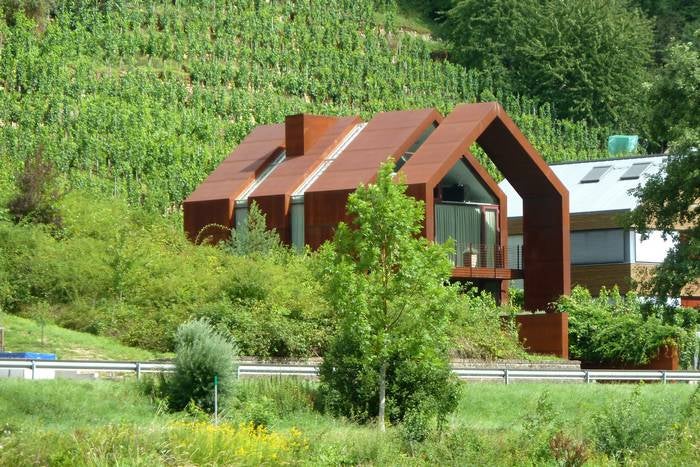 Een mooie plek, op het drukke treinverkeer na, over de spoorlijn vlak langs de Rijn, waar 's nachts voornamelijk goederentreinen langs denderen.