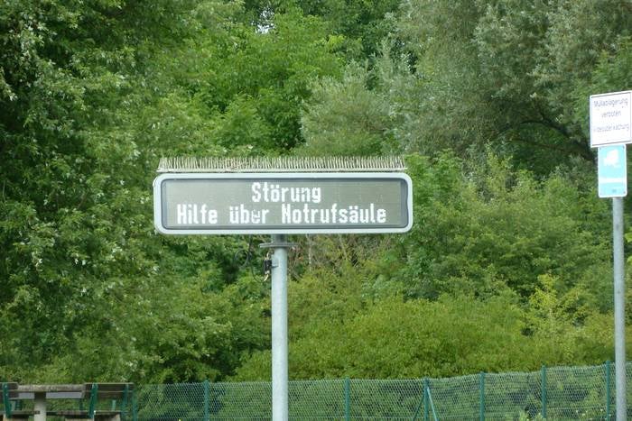 29-7 Geen vers stokbrood vanmorgen. Misschien heb ik een stuk van de vorige dag even in de koekepan gehad, anders heb ik ontbeten met voorgebakken broodjes. Het is in ieder geval 8.00 uur wanneer ik vertrek. Bij de volgende sluis; "de Talange" valt me ineens een blauw bord op.