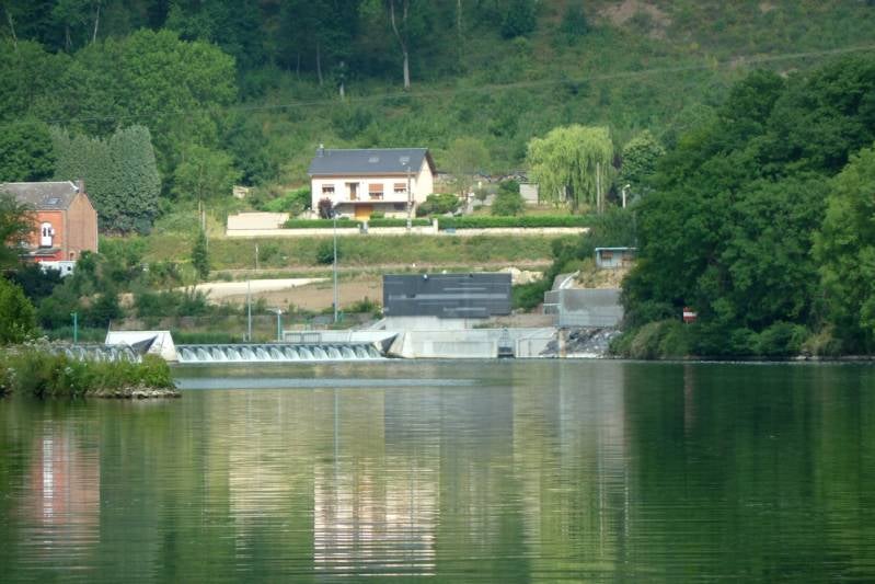 Wanneer ik bij sluis Revin aankom staat die open en vaar ik maar in. Er is echter geen enkele beweging te zien in of bij het sluiswachtershuisje. Ik maak maar vast aan een bolder in de muur.