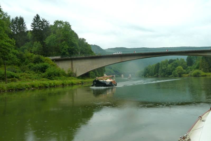 Aan de overkant van de Maas is een grote supermarkt met tankstation, dus ga ik 's middags op de fiets op onderzoek uit of ik daar wat diesel kan krijgen, maar de omweg daarnaartoe is te groot, en heuvelig om dat met een jerrycan met twintig liter diesel te doen. Over twintig kilometer kan ik tanken op het begin van het Ardennenkanaal bij Pont-à-Bar. Aan het water, dus wel duur, maar verderop kan ik al gauw weer goedkoper tanken. Lekkere dag vandaag; half bewolkt, en 22 graden