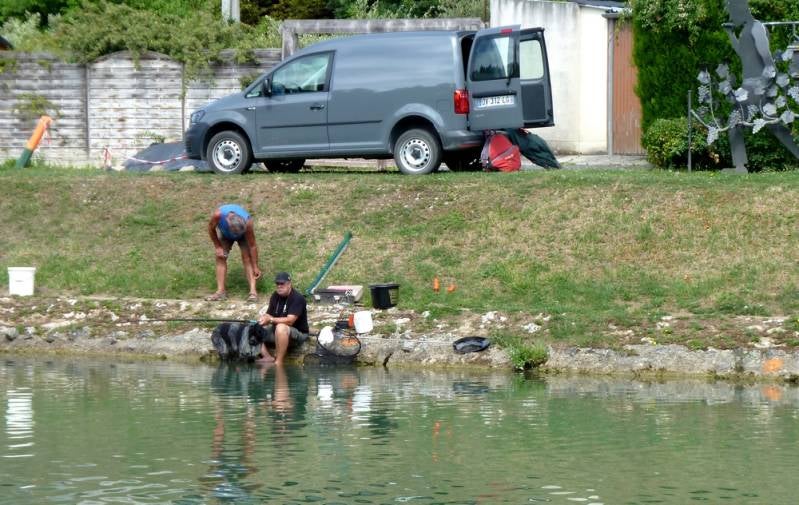 14-7 Afgelopen avond al feest in Chateau-Thierry, en in het parkje achter mij ligt aan de waterkant een stel op een kleedje hun roes uit te slapen. Een oud vrouwtje die de eendjes komt voeren kijkt even bij hen of het goed met ze gaat, en probeert ook een praatje aan te knopen. Het is mooi weer, allemaal mensen met kinderen komen op het parkje en het water af. De eendjes worden vetgemest. Vaak is het stokbrood zo hard dat het eerst kapot getrapt moet worden, en dan wordt het met de voet het water ingeschoven. Misschien moslims? Die schijnen eten niet in de vuilnisbak te mogen gooien. Ik fiets met een Jerrycan naar een pompstation vlakbij, maar die is gesloten. In de middag fiets ik nog even naar de markt in Chateau-Thierry, maar zie geen dingen van mijn gading. Het blijft vrij druk langs de waterkant, en ik besluit om de rust op te zoeken, start de motor, en ga verder stroomopwaarts, en meer een kwartiertje later aan bij: