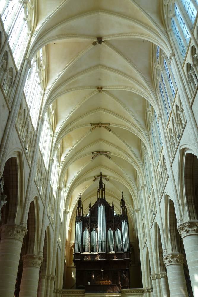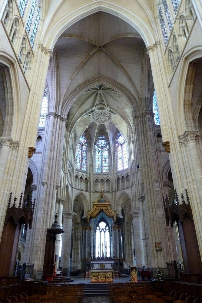 18-7 Om 8.00 uur gaan de lichten van de sluis aan en vaar ik er naar toe en er in, en anderhalf uur later kom ik bij de sluis van Châlons-en-Champagne aan. Die blijkt "bemant" door een vrouwelijke sluiswachter die me natuurlijk komt vertellen dat ik wél vast moet maken in de sluis. Direct na de sluis is nog een mooie aanlegpaats in de schaduw van de bomen. Ik ga daar op de fiets op zoek naar een supermarkt. Brood, afbakbroodjes en wijn, en weer een komkommer, zwarte olijven en een soort fetakaas (die toch weer niet zo smaakt als thuis) voor de Griekse salade. Wanneer de boodschappen opgeborgen zijn ga ik nog even naar de mooie Cathédrale Saint Etienne op driehonderd meter fietsen.