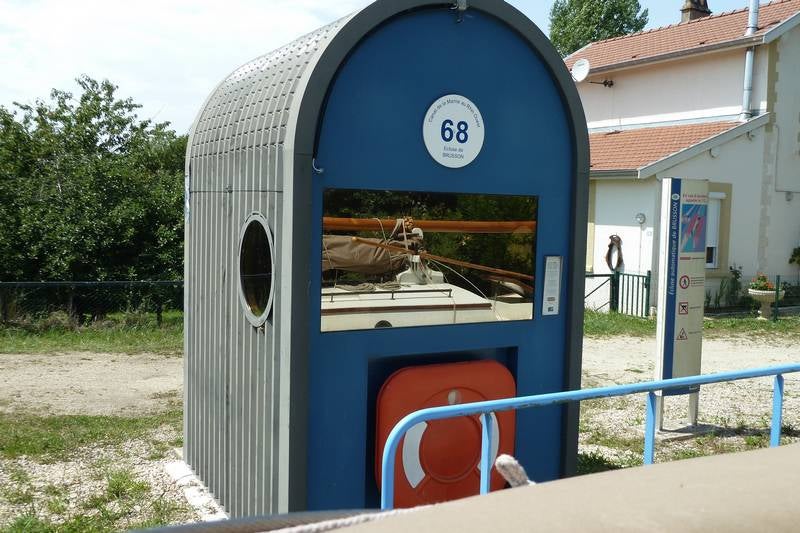 en wanneer ik tweeënhalf uur later aan de kant ga om te eten zit ik inmiddels op het Marne-Rijnkanaal. Wanneer ik ecluse 68 gepasseerd ben merk ik ineens dat ik mijn mooie nieuwe parasol kwijt ben.