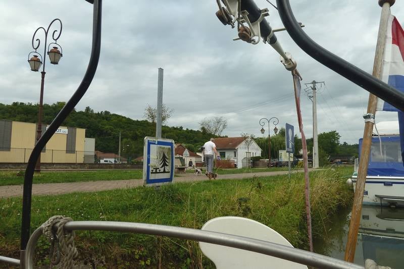 De dag begon redelijk goed, maar in de loop van de dag wordt het druilerig. Ik ben blij wanneer ik om 15.30 kan aanmeren bij Attigny. Na zes uur komt de zon er nog door.