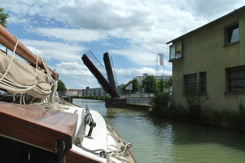 In Bar-le-Duc op twee plaatsen bediende bruggen. Onderstaande heb ik een hele poos voor liggen wachten, zelfs een poosje aangemeerd!