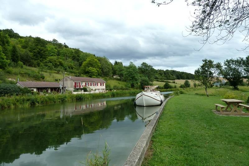 en een kleine 5 kilometer verder meer ik aan bij Fains-les-Saurces. De bakker vlakbij blijkt gesloten, maar wanneer ik op de fiets naar een verderop gelegen supermarkt ga en door het dorp fiets zie ik nog een bakker die wél open is. 's Middags ga ik even op de fiets naar Bar-le-Duc, om te zien hoe daar de situatie is. Daar wil ik niet liggen, met aan de ene kant een spoorlijn, en aan de andere kant een vrij drukke weg, en het ligt er ook behoorlijk vol! Toch wel even een leuk fietstochtje zo langs het kanaal.