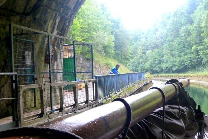 en word ik op de hele tocht door de tunnel begeleid door een gehelmde medewerker van de VNF op de fiets.