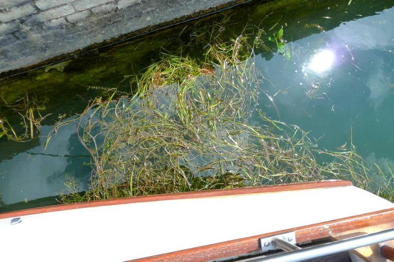 26-7 Vanmorgen vertrek ik om negen uur. In verschillende sluizen veel drijvende waterplanten, zodat los in de sluis liggen niet aan te raden is.
