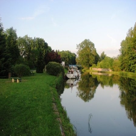 We willen aanmeren bij Langres maar niet in de haven. Van de vnf hebben we wat informatie over het kanaal gekregen en daar staat op dat 1 km voorbij sluis 2 mogelijkheid is om aan te meren. Op een bepaald moment denken we te zien waar dat is maar de meerijdende sluiswachter vertelt dat het verderop is. Hij is heel behulpzaam, stopt bij de volgende brug, loopt de brug over en begint aan de kant het kniehoge gras wat plat te stampen en zowaar er komen een paar stalen palen tevoorschijn waar je de boot aan af kunt meren. Hij pakt de touwen aan en we meren aan, maar het blijkt daar te ondiep om tegen de kant te kunnen liggen. We drinken eerst maar eens een kop thee maar na een kwartier varen we terug naar de plek die we eerst zagen, en aan een paar meerpennen liggen we hier eerste klas.