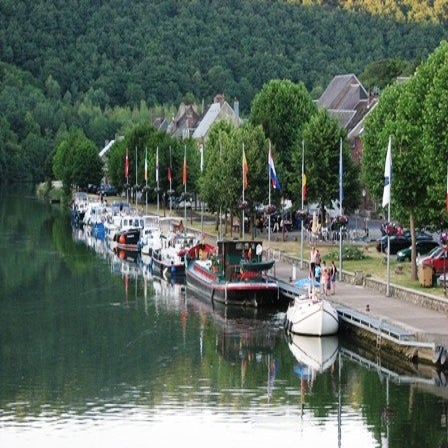 en ik ga meteen naar de bakker voor brood in verband met een eventuele middagsluiting van de bakker. Het ligt aardig vol in de haven maar wij kunnen helemaal achteraan liggen, een plek met een mooi vrij uitzicht en Twan kan zo achter de boot het water in. Hij krijgt daar niet genoeg van daarom halen wij hem er na 1,5 uur maar uit. 'S avonds maken we een wandeling door Mouzon, het is niet groot maar ik vind het een van de mooiste plaatsen langs de Maas.