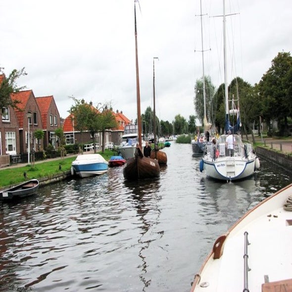 We gaan niet door Leeuwarden, maar over het Ouddeel om Leeuwarden heen. Om de proviand aan te vullen leggen we daar aan, en op de fiets ga ik op zoek naar een supermarkt. Ik word door een behulpzame Fries de goeie kant op gewezen, maar het blijkt nog een heel eind fietsen, maar dan heb je ook wel een Jumbosupermarkt met ontbijtkoek voor een zacht prijsje. Daarna varen we naar de Zwettehaven waar de start is van de Elfstedentocht, en gaan daar bakboord uit, de Zwette of Snekertrekvaart op. Met de lange-termijn weersverwachting zaten ze er toch een beetje naast bij het KNMI, want het weer is tot nu toe wel redelijk met af en toe een mooie dag, maar het echte mooie weer is uitgebleven. Vandaag is het grijs en 19 graden.